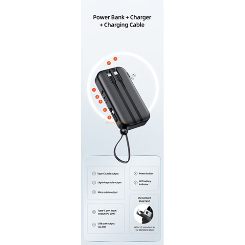 •  3IN1 design, charger+ power bank + charging cable.